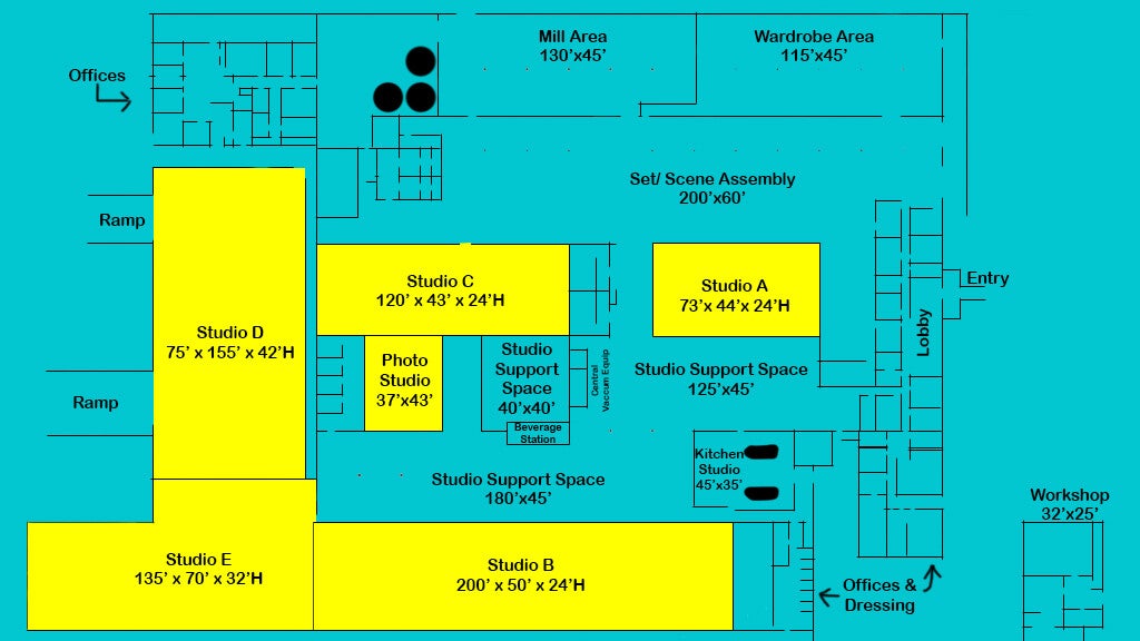 Soundstages, offices, retail, dining, homeless center, pet center and more